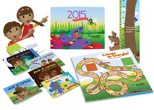 La Fase 2 incluye una guía para maestros, un juego de mesa, un kit de decoración y un calendario educativo que complementan el proceso de enseñanza-aprendizaje, facilitando su implementación en aulas y espacios comunitarios.Cinco cuentos llenos de aventuras, protagonizados por José el Curioso, Sara y Chispita, que invitan a los niños a descubrir y comprender, de manera sencilla y divertida, las cuatro principales tecnologías de generación de energía renovable y el proceso de generación de energía a través de la biomasa.