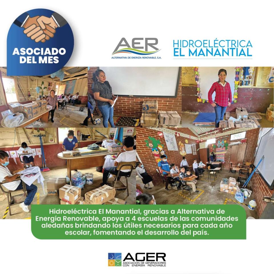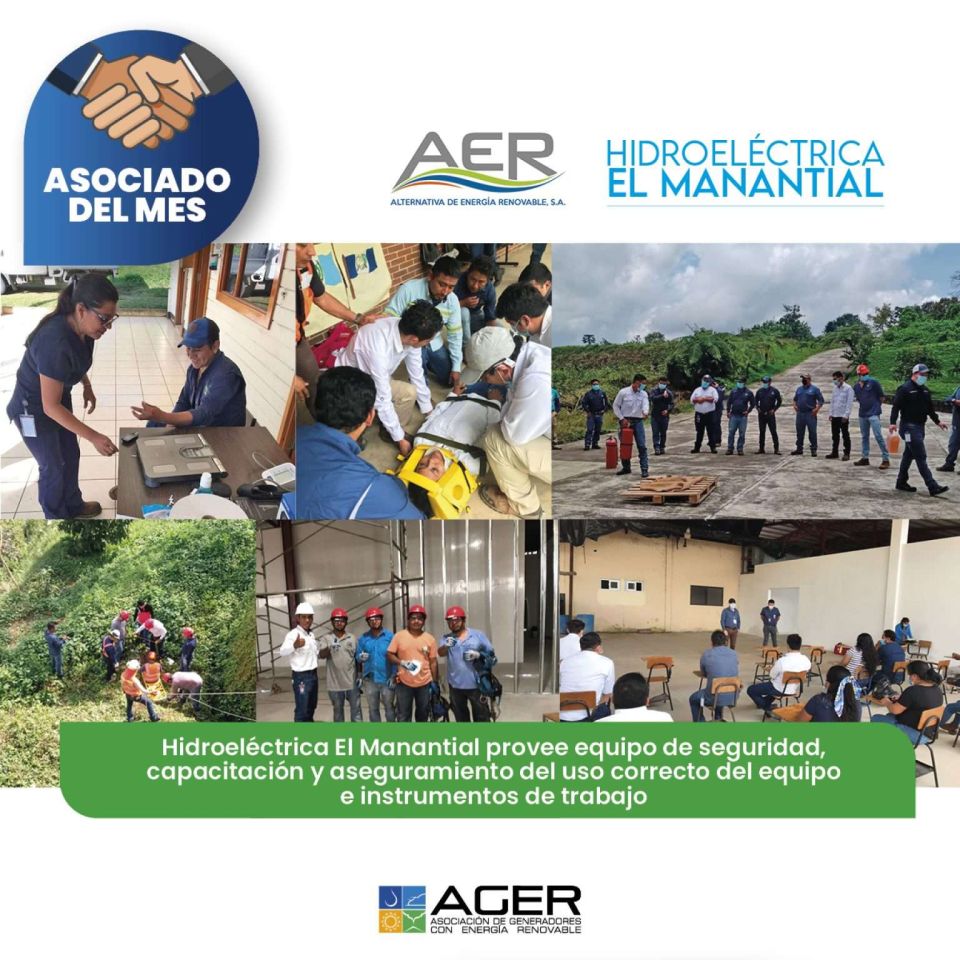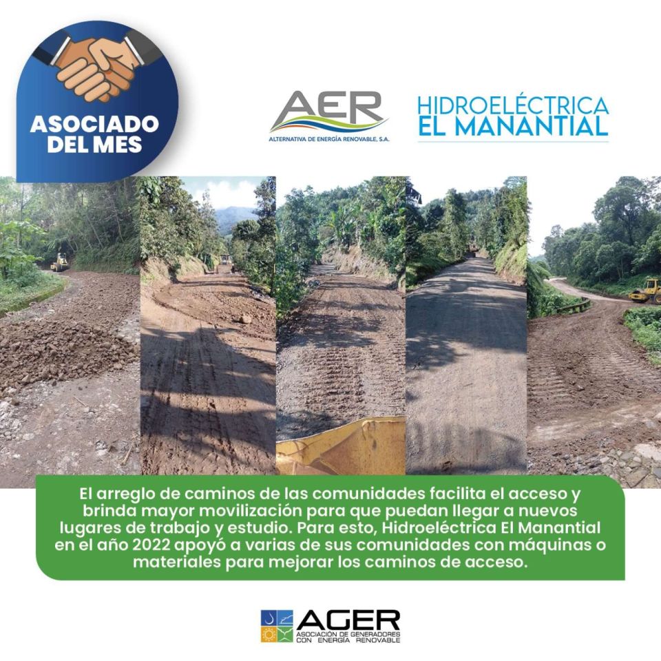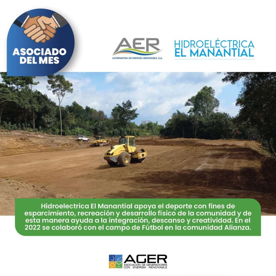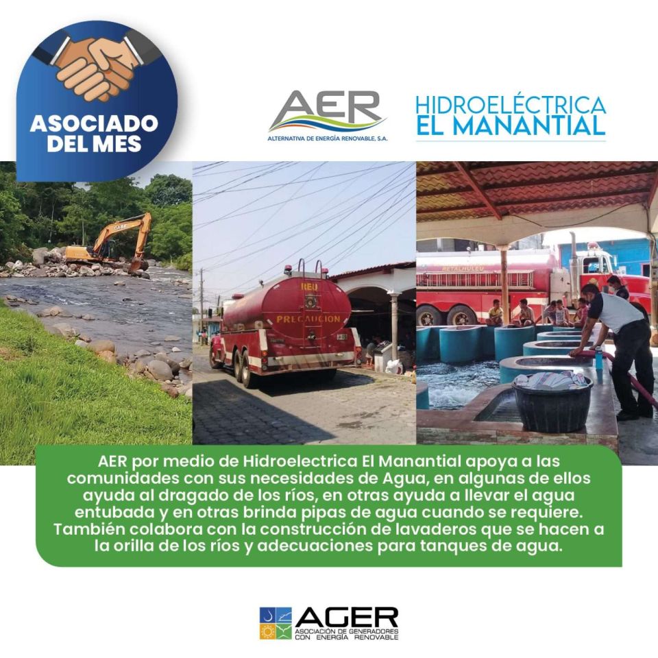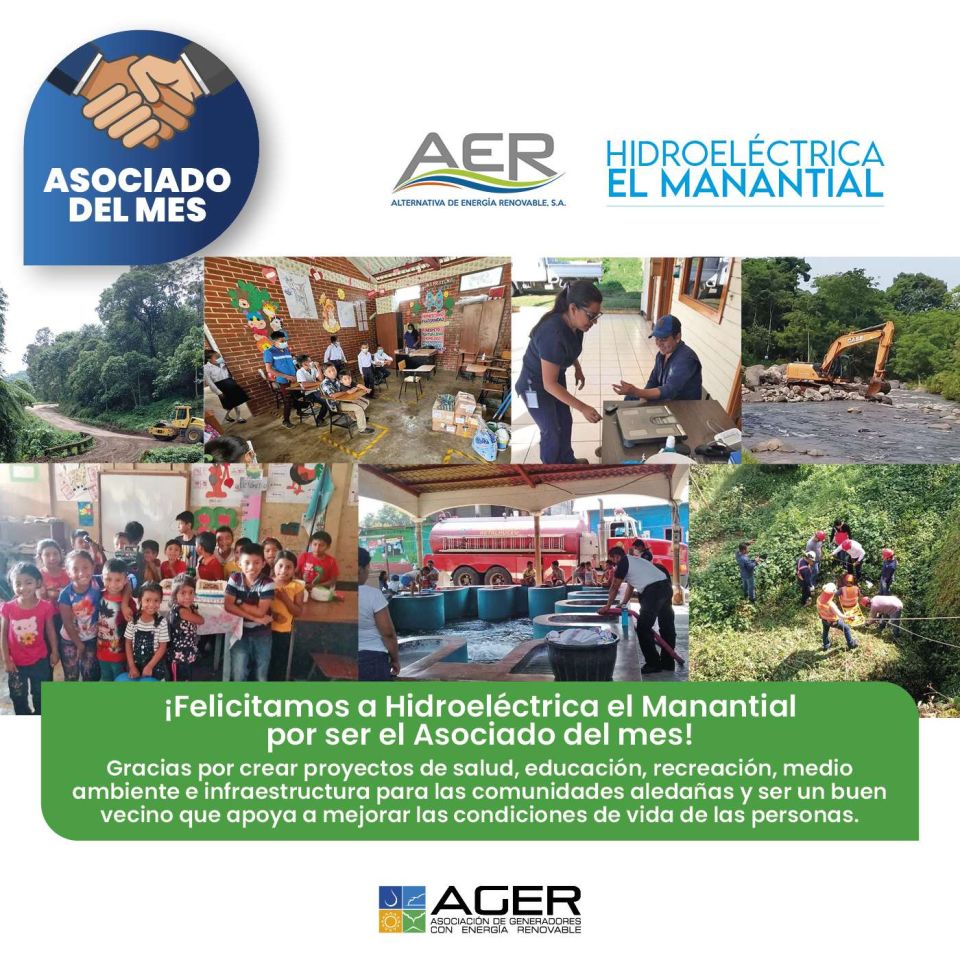 ¡Felicitamos a AER por ser el Asociado del Mes! Gracias por crear proyectos de salud, educación, recreación, medio ambiente e infraestructura para las comunidades aledañas. Hidroeléctrica El Manantial es un buen vecino que apoya a mejorar las condiciones de vida de las personas.