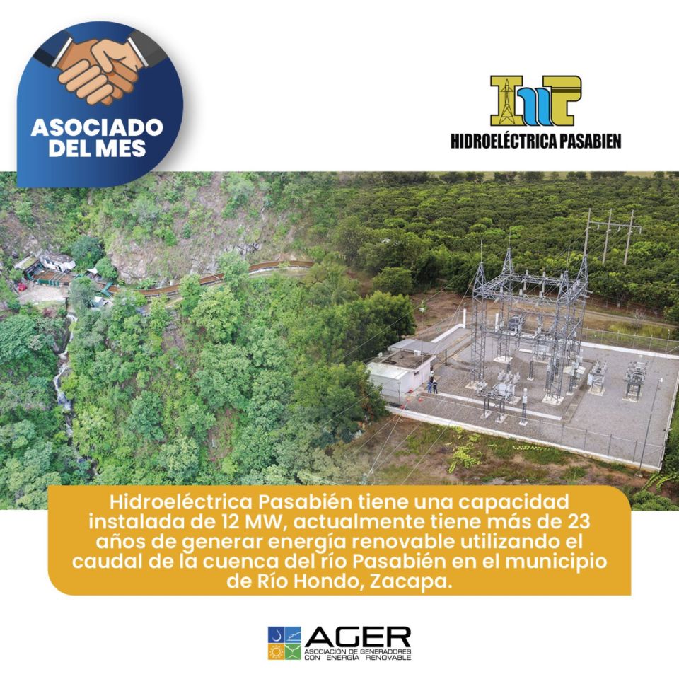 Hidroeléctrica Pasabién tiene una capacidad instalada de 12 MW, actualmente tiene más de 23 años de generar energía renovable utilizando el caudal de la cuenca del río Pasabién en el municipio de Río Hondo, Zacapa. Este mes le dedicamos nuestra sección de Asociado del Mes por sus grandes aportes a Guatemala y a las comunidades aledañas. En próximas publicaciones detallaremos varios de sus más importantes programas de apoyo.