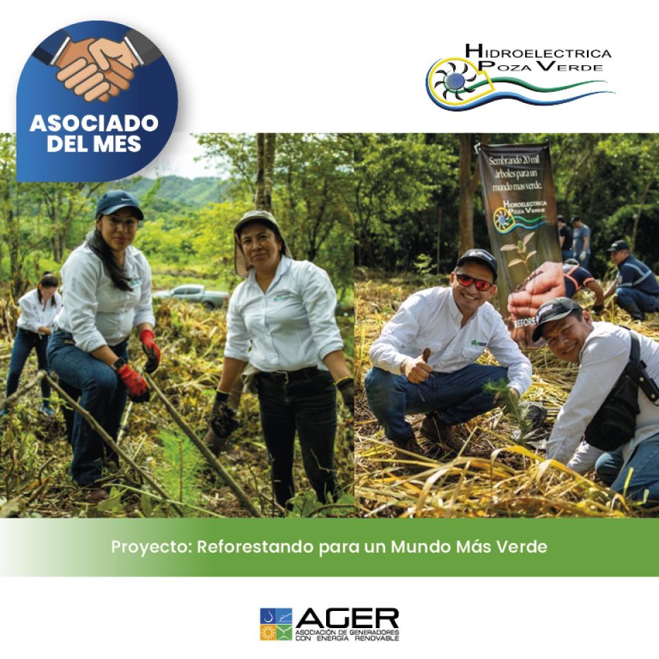 El Proyecto Reforestando Para un Mundo Más Verde contribuye a la reducción de CO2 y a la sostenibilidad del recurso hídrico en la generación de energía renovable. Promueve la recuperación de la cuenca Aguacapa, garantizando agua limpia para las comunidades y la operación de la hidroeléctrica. Cada año, se realizan voluntariados en alianzas corporativas, fortaleciendo el compromiso con el medio ambiente. Por ello, Hidroeléctrica Poza Verde es nuestro #AsociadoDelMes